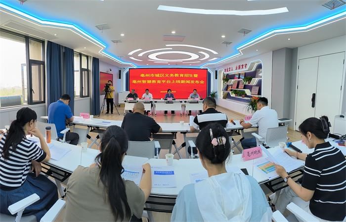 7月20日上午,市教育局召开城区义务教育招生新闻发布会。市教育局副局长刘红岩、市教育局基础教育科科长张杰出席发布会,对今年的城区义务教育招生政策进行解读,并就大家关心关切的问题回答记者提问。市教育局宣教中心主任张秀礼主持新闻发布会。中安在线、安徽商报、安徽经济报、市场星报、亳州晚报和亳州广播电视台记者参加发布活动。