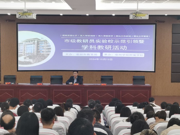 10月13日,亳州市级教研员实验校示范引领暨学科教研活动在亳州学院附属学校举行。市委教育工委副书记、市教育局局长王林兵,市教育局副局长刘红岩,市教科所所长洪松岩出席本次活动。亳州学院附属学校校长茹磊主持活动。