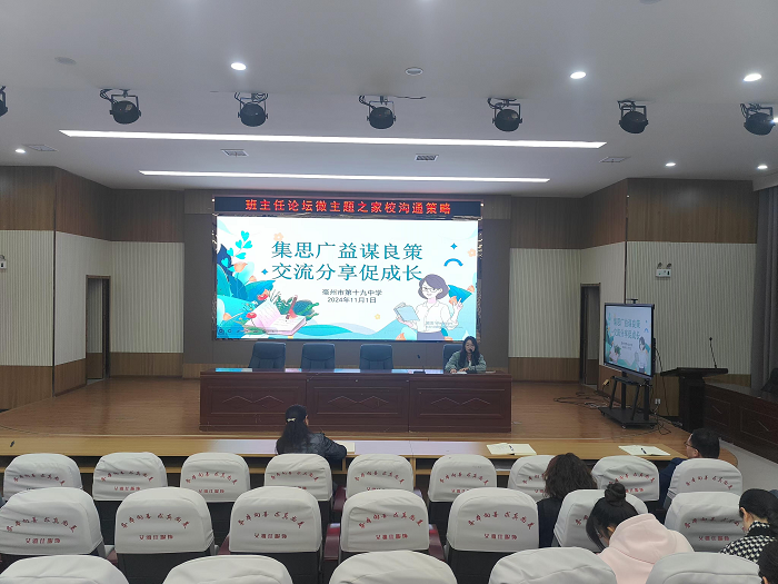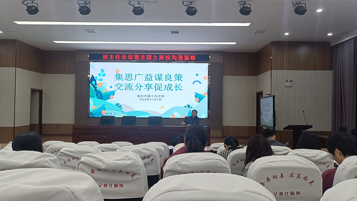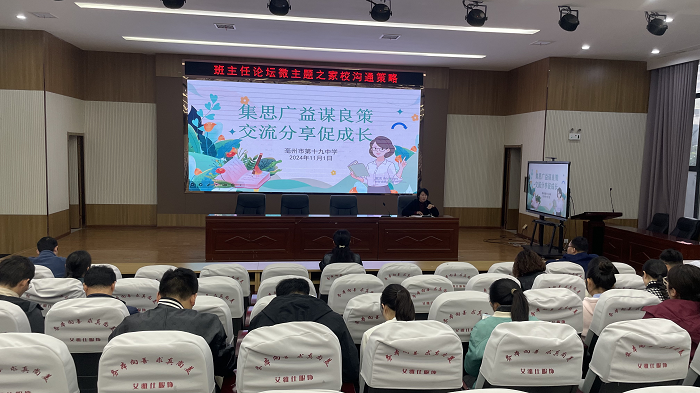 11月1日,亳州市第十九中学举行了班主任工作论坛,进一步加强班主任队伍建设,探索班级管理的新方法,推广优秀班主任的成功经验,促进班主任专业化成长。