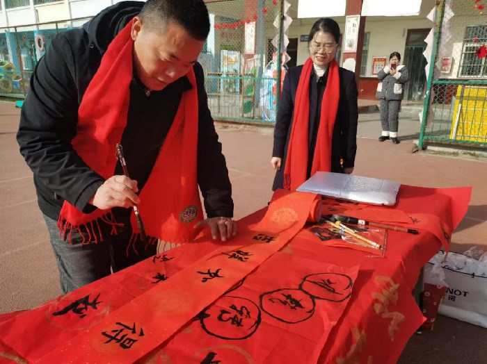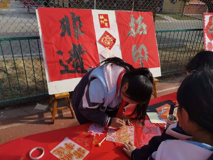 活动在热烈欢快的非洲鼓《舞龙串烧》中拉开序幕。师生们精心准备的节目轮番上演,精彩纷呈。舞蹈《桃花笑》以欢快的旋律和优美的舞姿,瞬间点燃了现场的气氛;红歌合唱《军民大生产》《我和我的祖国》深情表达了师生对祖国的热爱和祝福;课本剧《西门豹治邺》让师生们在笑声中回味起了校园生活的点点滴滴。此外,活动现场还有书法、绘画、剪纸等传统文化展示,充分展现了赵桥学区学子们多才多艺、全面发展的风采。