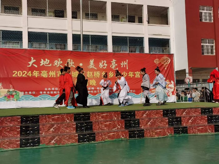 12月30日,由谯城区文化旅游体育局、赵桥乡人民政府主办,谯城区赵桥学区赵桥小学、赵桥乡新时代文明实践和农业农村发展中心承办的“大地欢歌,美好亳州——2024年谯城区赵桥乡乡村少年宫冬季村晚”在赵桥学区赵桥小学举行。全校师生与各界代表及部分家长欢聚一堂,共同迎接充满希望与梦想的新年。