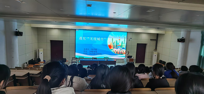 讲座期间,主讲人孙于茹老师紧扣“无废城市”概念,详细解读了通过减少废弃物产生、提高资源利用率、大力推进垃圾分类等关键举措,实现城市环境可持续发展的有效路径。讲座列举多个生动鲜活的案例,向学生全方位展示了国内外在“无废城市”建设方面取得的成功经验,鼓励学生从身边细微之事入手,将环保理念切实融入日常生活。学生们全神贯注听讲,在互动环节表现踊跃,围绕如何减少日常生活废弃物、优化垃圾分类方法等实际问题,与主讲老师展开热烈讨论,现场氛围十分活跃。讲座结束后,不少学生反馈此次讲座收获巨大,不仅加深了对环保知识的认知,更重要的是,自身的环保责任感得到显著增强。
