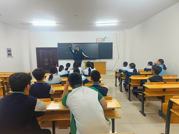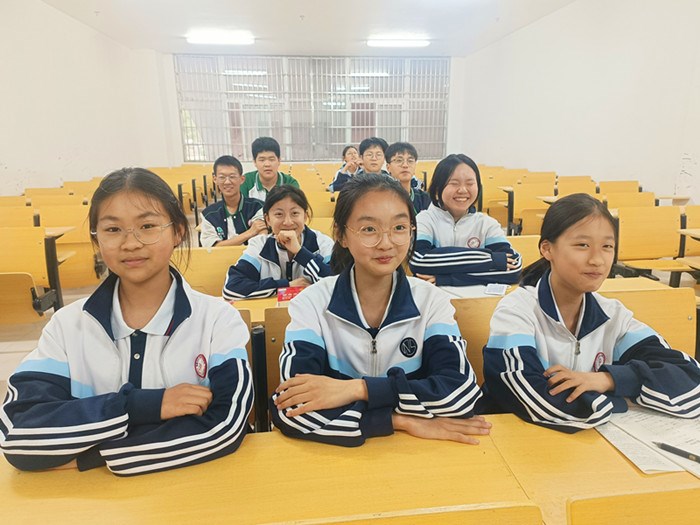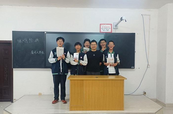 在指导教师任相茹的鼓励下,高一年级社员古振杞率先登台,先演唱了《水调歌头·明月几时有》,随后和修紫鹤一起合唱《琵琶行》。两位社员热情自信,迅速营造了热烈的氛围。随后八年级和七年级社员依次登台,先后演唱了《少年中国》《孤勇者》《青花瓷》等或气势磅礴、或意境优美的经典歌曲,为全体社员带来了一场听觉盛宴。活动最后,全体师生齐唱《义勇军进行曲》,高昂豪迈的歌声在活动室回荡,振奋了每一位社员,将活动推向高潮。