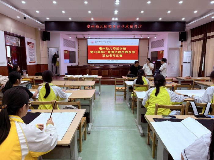 9月17日,亳州幼儿师范学校开展了推普周系列活动之书写比赛。比赛面向2022级、2023级和2024级三个年级的学生,采用“每班3人”的选拔机制,吸引了各年级书法爱好者踊跃参与。