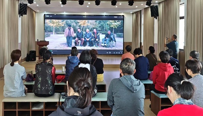 首期活动分为讲座和观影两个环节进行。第一环节是陈若晴老师主讲的老龄化国情教育讲座。她从四个层面对老龄社会相关内容进行解读。在认知层面,要深入了解我国老龄化的规模、速度、区域差异等基本国情,认识到老龄化是社会发展的必然趋势。在意识层面,要破除“老龄化=负担”的错误观念,树立“积极老龄化”理念,认识到老年人的价值和老龄社会的发展机遇。在行动层面,要引导个人做好养老规划,推动家庭履行赡养责任,促进社会各界参与老龄服务,助力国家完善养老保障体系。在学校层面,要结合老年学校办学特点,发挥老年学校在积极老龄观传播中的核心作用,在学习中创造银龄新价值。