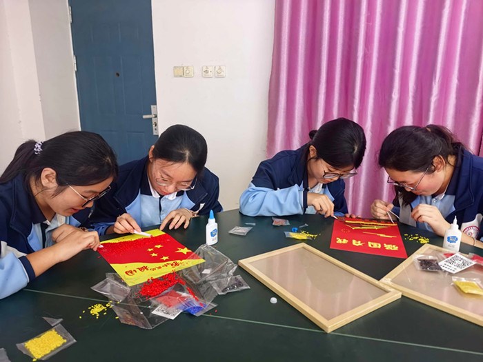 “今年是中国人民抗日战争暨世界反法西斯战争胜利80周年,马上又迎来新中国成立76周年,我们亲手制作了一面五星红旗,来表达我们当代中学生爱党、爱国、热爱和平的心声。同时,我们也将努力学习文化知识,为实现中华民族伟大复兴而努力奋斗。”梁静文同学激动地说道。