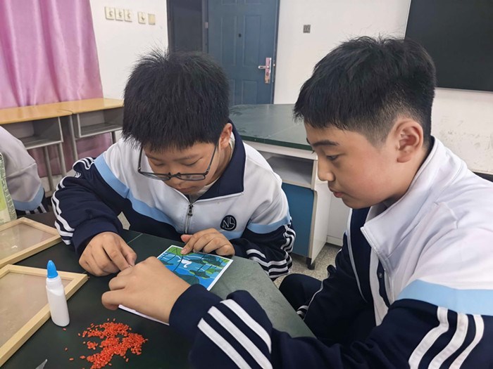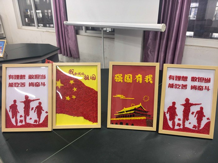 近日,亳州十八中劳动室里热闹非凡,同学们在里面忙得热火朝天。他们三五成群,通力合作,不一会,一幅幅崭新的作品就出现在大家面前。