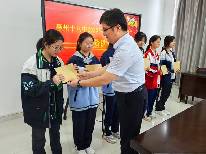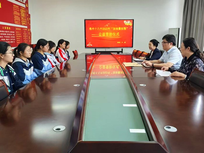 近日,亳州十八中在学校会议室举行“加油徽姑娘”资助款捐赠仪式。此次捐赠资金由市妇女联合会统筹发放,共计5400元,精准惠及八年级、九年级、高二、高三六个年级的6名学生。