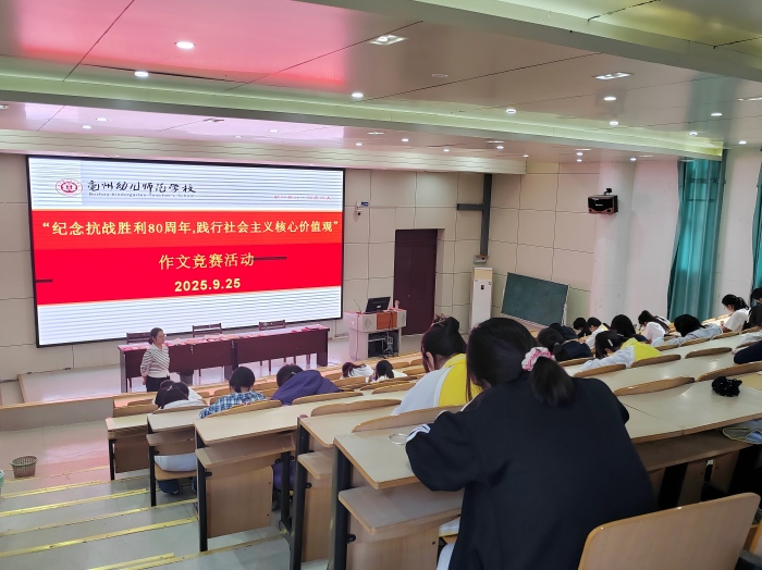 9月25日,亳州幼儿师范学校面向23、24、25级学生成功举办以“纪念抗战胜利80周年,践行社会主义核心价值观”为主题的作文竞赛。活动一经推出,便获得同学们的积极响应,大家踊跃报名,热情参与。