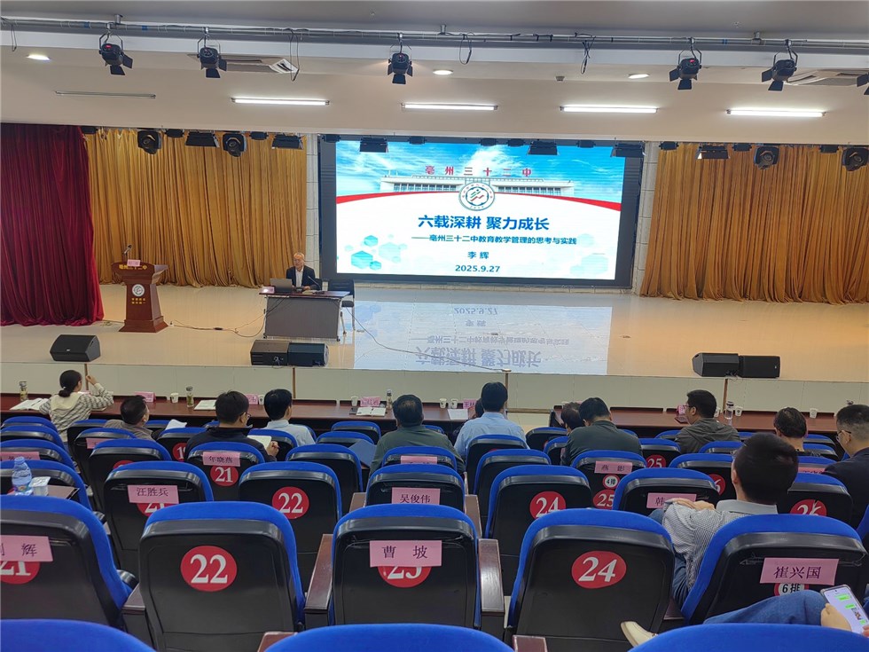 亳州市第三十二中学校长李辉作了题为《六载深耕,聚力成长》的专题报告。他介绍,学校近年来坚持“五个一”工程,通过在“引”上明方向、在“谋”上做文章、在“实”上下功夫、在“研”上求突破、在“磨”上强底气五条措施提升办学成效。同时,贯彻落实亳州市教育工作“十个三”工作要求和质量提升“四四工程”,努力在教师发展和学生培养方面取得积极进展,办好人民满意的教育。
