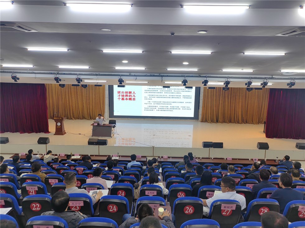 本期论坛以“科学提质,精准育才”为主题。南京市第二十九中学党委书记唐云龙应邀到场作了题为《守正创新,向着拔尖创新人才培养的新高度继续攀登》的专题讲座。他从“时代需要什么样的人才”“我们怎样培养人”以及“十年来学校教育的两大实践探索”三个方面,分享了南京二十九中在人才培养方面的经验和做法,强调要直面时代之变,持续深化教学改革;要致力于创造力培养,构建以“三环”课程框架为基础,以“卓越”为导向的校本课程体系;要开启拔尖创新人才培养工程的探索,采取有力举措助力拔尖人才成长。