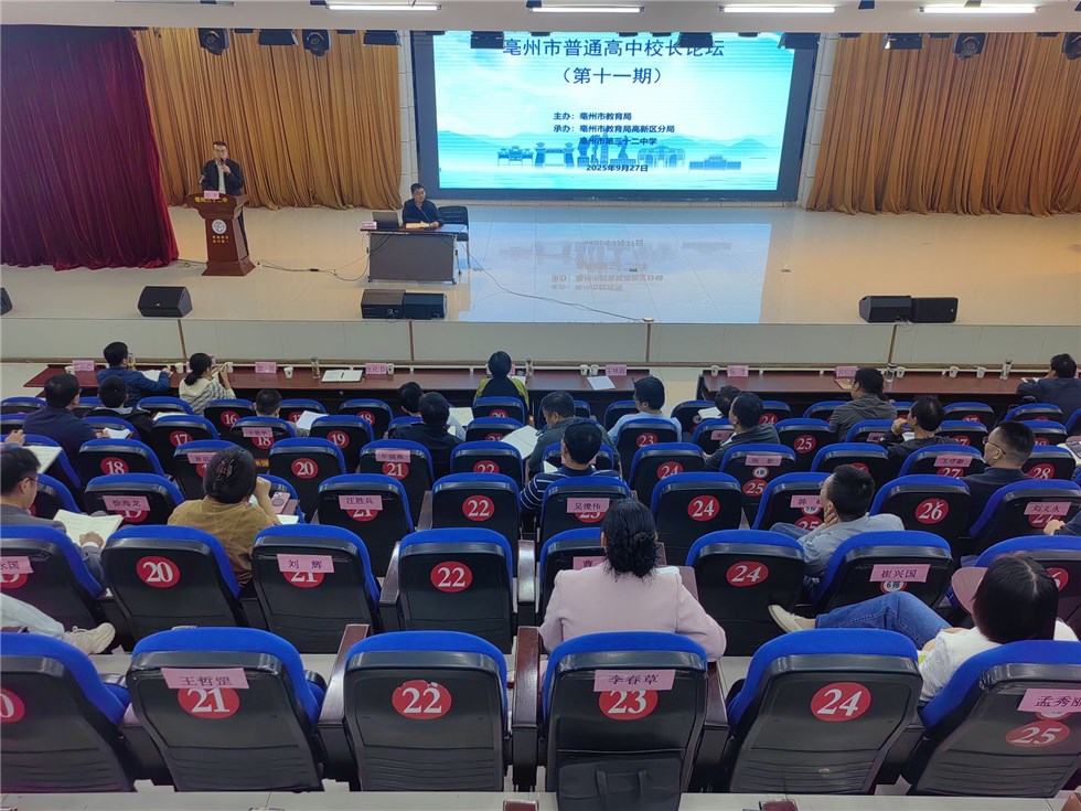 王林兵强调,要充分发挥校长论坛的交流引领作用,结合实际推动优秀经验落地见效。要扎实推进县域普通高中振兴行动计划,完成扩资源、提质量、强保障、优生态、促融通五大任务。要强化教研指导,推动教研重心下沉,依托亳州一中教研基地校,服务高考、服务一中、带动教研、带动县中。他指出,要借助网上巡课等措施进一步规范教学行为,在规范中实现作为与提升。持续开展“爱的生长”专题教育,深化师德师风建设,坚守立德树人主线,高质量发展生命线,校园安全底线,纪律作风红线和师德师风第一标准线。最后,他要求各校切实做好中秋、国庆期间校园安全工作。