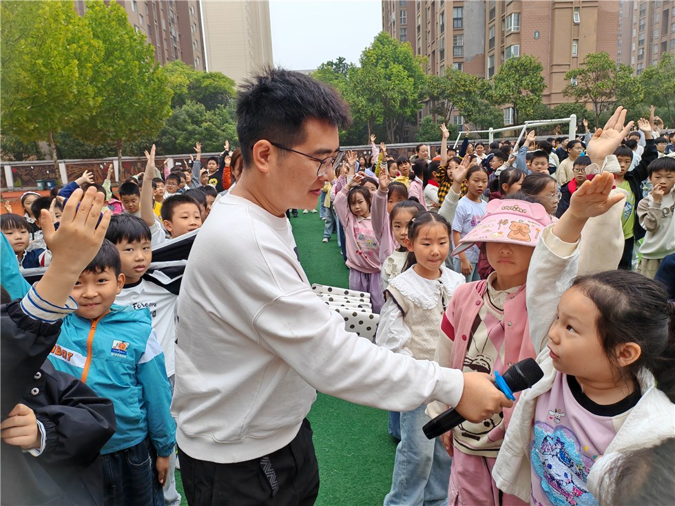 党员教师组成“国旗护卫队示范岗”,现场指导动作要领。当鲜艳的五星红旗在童声国歌声中冉冉升起,孩子们不约而同地高举队礼,仪式感满满。党员姜校长亲自带领师生同上思政大课,并穿插“国庆知识快问快答”,同学们踊跃抢答,把爱国情、强国志、报国行悄然种进心田。学生代表随后登台,分享阅读《雷锋的故事》心得:“我要把雷锋叔叔‘一滴水’的精神,汇进新时代的江河!”童声稚嫩却铿锵,赢得阵阵掌声。