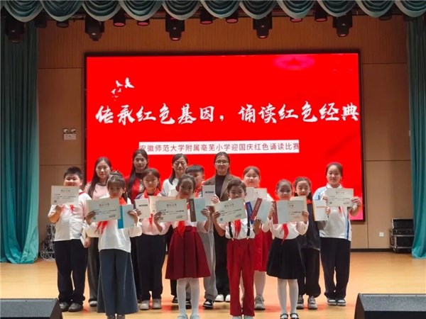 亳州市第九小学以“传承红色基因 诵读红色经典”比赛喜迎国庆。小选手们自信登场,对《鸡毛信》《小英雄雨来》等经典篇目进行演绎,或娓娓道来,或慷慨激昂、或深情款款,把对祖国的热爱、对先烈的崇敬融入其中,赢得阵阵掌声。