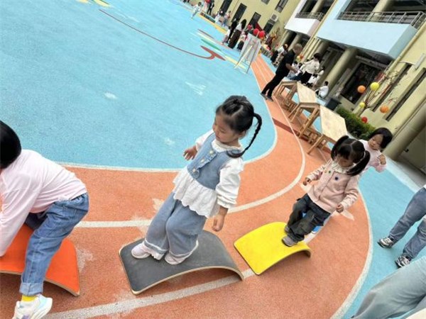 游园会是活动的 “欢乐核心”,9个主题活动让亲子体验趣味十足。“重走长征路”场馆内,幼儿们攀爬“雪山”、跨越“泸定桥”(平衡木);“航天火箭发射基地”里,亲子利用彩纸搭建火箭,贴上五角星、画上国旗。此外,“星光灯笼秀”中,亲子共同装饰专属灯笼;“双节照相馆”前,亲子在背景板前合影,定格温馨瞬间。