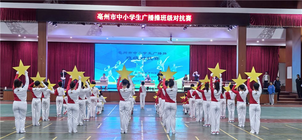 近日,我市中小学生班级广播操比赛在亳州市第九中学落幕。全市48支中小学班级代表队同台竞技,以整齐划一的动作、昂扬向上的风貌,展现了新时代青少年的阳光活力。