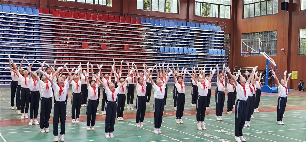 在比赛现场,各代表队队员身着统一校服,迈着铿锵有力的步伐依次入场。伴随着激昂欢快的广播操音乐,队员们精神抖擞、身姿挺拔,抬手、弯腰、踢腿、转身、跳跃……每一个动作都标准规范、协调连贯,展现出扎实的动作功底。班级队列始终保持整齐有序,进场退场衔接流畅,充分体现了良好的团队协作精神与纪律意识。参赛队员朝气蓬勃的笑脸,正是教育部倡导的“让学生眼中有光、身上有汗”健康教育理念的生动写照。评委团从参赛学生的精神面貌、动作质量、队列队形、进退场秩序等多个维度进行公正的现场赋分,最终评选出小学组、中学组各奖项。