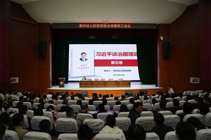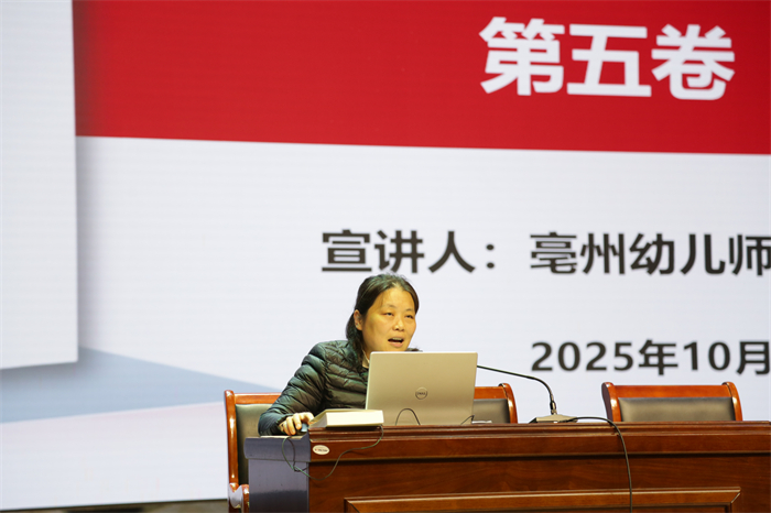 10月13日,亳州幼儿师范学校召开全体教职工会议,开展深入学习《习近平谈治国理政》第五卷宣讲宣传,党委委员、纪委书记、副校长石慧作专题宣讲。