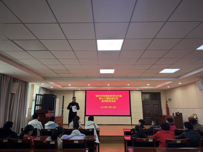 10月13日,在第36个国际减灾日到来之际,亳州市特殊教育学校组织开展了一系列安全宣传教育活动,增强学生的安全防护意识,提升学生的应急避险能力。