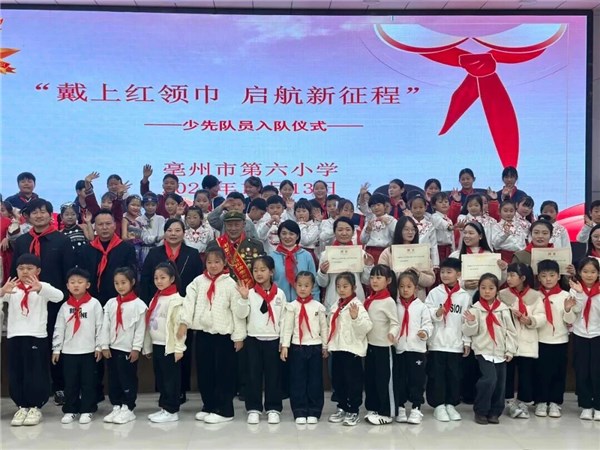 老兵宣讲,点燃“红领巾”初心。亳州市第六小学则在“戴上红领巾 启航新征程”入队仪式上,邀请“中国好人”、退役老兵张西军进校宣讲,以自身多年公益事迹,为120名新队员上了入队“第一课”。