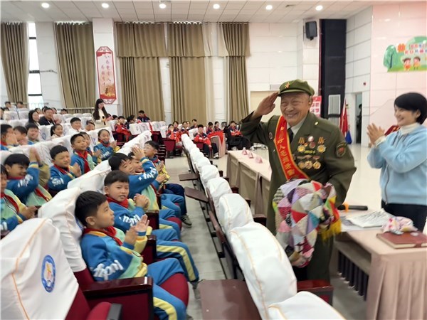 仪式特邀请退役老兵张西军同志现场宣讲红色故事。张西军被亲切地称为“亳州活雷锋”,2010年6月,入选“中国好人榜”,常年在青云学校门口给孩子指挥交通,他用实际行动影响带动更多的人来传承雷锋精神,弘扬社会正气。