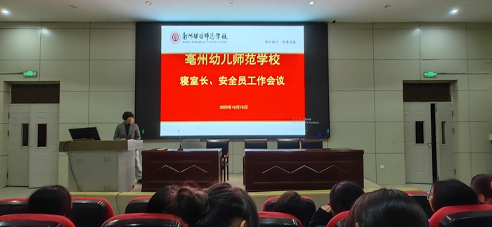 10月15日,亳州幼儿师范学校召开2025年秋季寝室长、安全员培训会议。本次培训由学生处副主任宋玉兰主讲,旨在进一步强化宿舍管理工作,全力打造安全、和谐的住宿环境。学校全体寝室长与安全员均参加了此次培训。