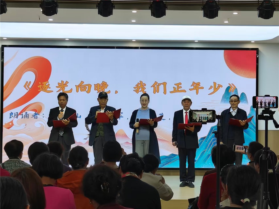 10月15日,利辛县老年开放大学举办了一场以“逐光向晚,诗颂时代”为主题的诗歌朗诵会。老年学员以独诵、合诵的方式倾情诵读经典佳作,以声传情,以诗抒怀,共同演绎了一场充满银龄风采的文化盛宴,展示了诗词文化的魅力,弘扬了中华民族尊老、爱老、敬老的传统美德。