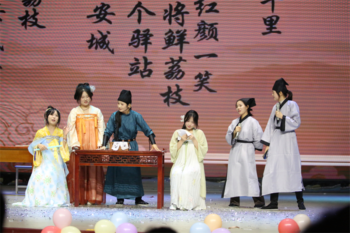 乐器演奏环节,钢琴独奏《剩下的盛夏》格外动人。指尖在琴键上跳跃,悠扬旋律流淌而出,既传递出青春的青涩与美好,也展现出学生扎实的乐器演奏功底。紧接着,小品《最后一站》以贴近生活的剧情、幽默又不失温情的表演,讲述了师生间的暖心故事。自然的台词与细腻的表情,展现出出色的舞台表现力,引得现场笑声与掌声交织。