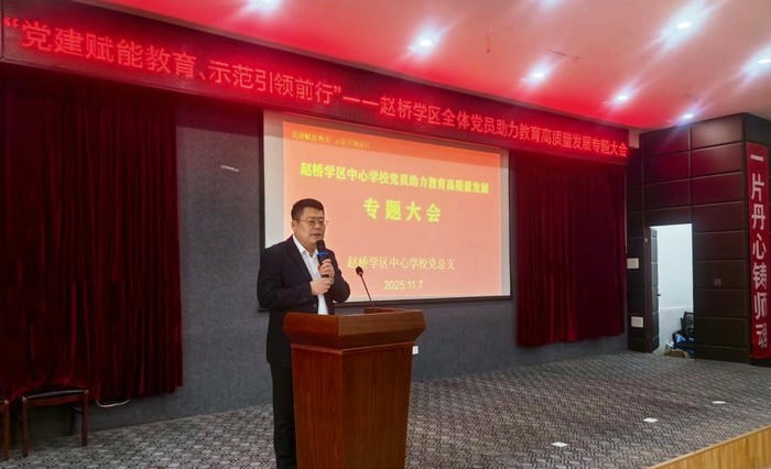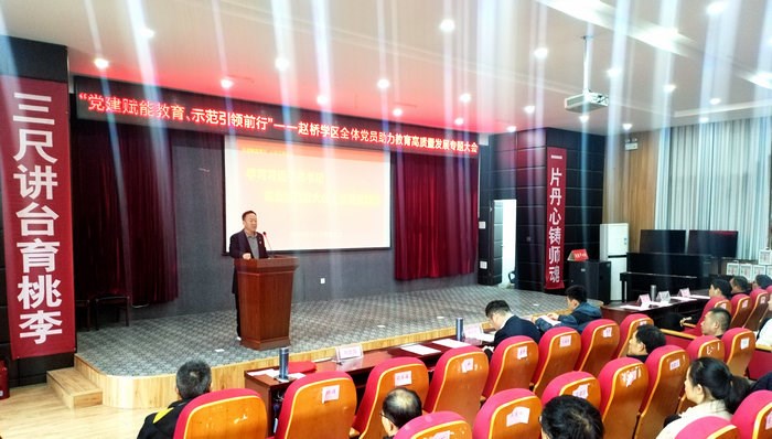 11月7日,谯城区赵桥学区组织召开“党建赋能教育、示范引领前行”全体党员教师专题会议,以党建为引领,推动学区教育高质量发展。
