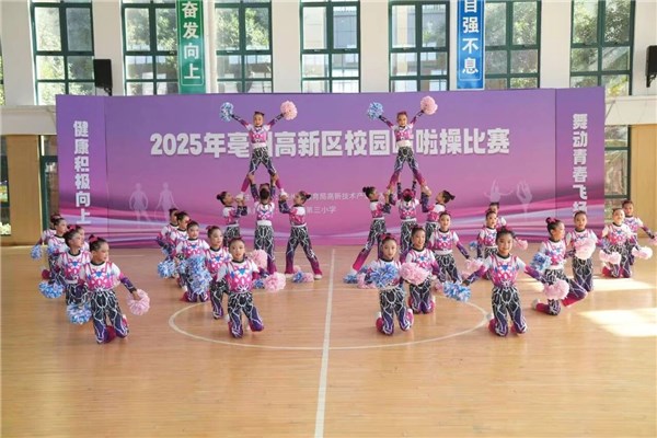 11月29日,2025年亳州高新区校园啦啦操比赛在亳州市第三小学举行。来自全区各中小学、幼儿园的53支参赛队伍齐聚一堂,以活力为翼、以激情为笔,在赛场之上演绎新时代学子的蓬勃风采。