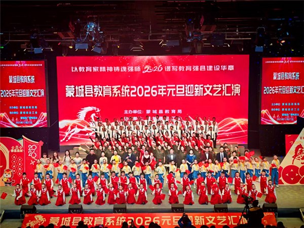据悉,此次由蒙城县教育局主办,蒙城县总工会、蒙城广播电视台协办的蒙城县教育系统2026年喜迎新年文艺汇演。蒙城县各级各类学校党委书记、校长,优秀教师代表,教育系统人大代表、政协委员,乡镇分管教育的干部等近600人观看了文艺盛宴。