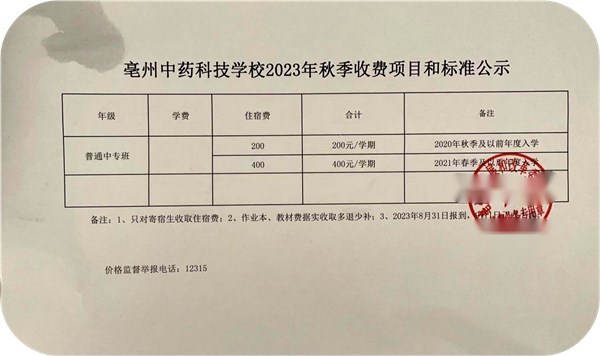 | 名称: | 安徽中药科技学校2023年秋季收费标准及项目 |