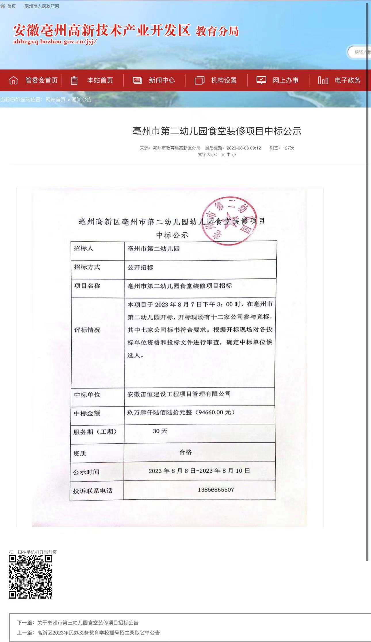 | 名称: | 2023年秋食堂改造招标、中标公告 | 文号: | 无 |